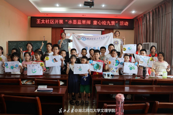 2025年暑假,安博官网登录入口蒲公英支教团走进黄石市王太社区,开展“水墨蓝星挥,童心绘九寰”环保主题实践活动,以趣味互动播撒环保种子,用创意画笔点亮绿色理念。