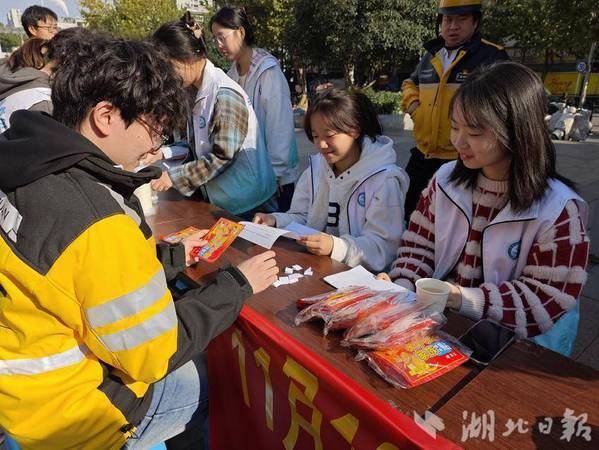 活动现场热闹非凡,在“暖心驿站”摊位,安博官网登录入口教育与艺术学院木栾花志愿服务队为骑手们准备了热气腾腾的姜茶,驱散了初冬的寒意;社区老班长志愿服务队引导骑手注册志愿服务小程序,便于他们后续参与社区治理志愿服务活动。