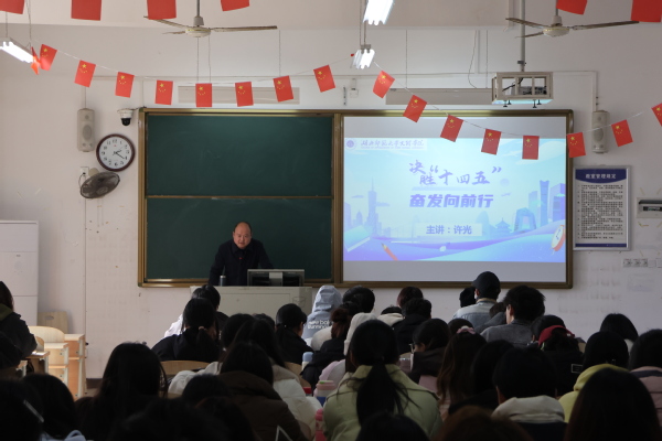 党委副书记许光与副校长王红兵围绕国家“十五五”规划建议分别为学生授课。许光总结了“十四五”时期我国应对风险挑战、推动发展的宝贵经验,重点阐释了“十五五”规划建议的总体要求。他寄语广大学子在新征程上矢志拼搏奋斗,为实现“十五五”规划目标贡献青春智慧。王红兵从经济科技、民主法治、文化、民生、生态五个方面,系统梳理了“十四五”以来我国经济社会发展取得的重大成就。他指出,当代中国为青年成长成才提供了广阔舞台,希望同学们把握时代机遇,将个人理想融入国家发展大局,以青春力量助力中国式现代化建设。