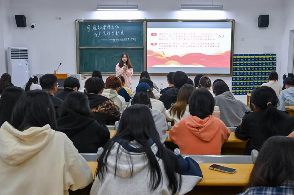 为进一步筑牢青年党员廉洁修身的思想根基,持续营造校园“崇廉尚洁、风清气正”的良好氛围,经济与管理学院学生党支部于101616时在教学楼举办“学廉知理传文化 守正笃行育新风”廉洁主题演讲比赛。