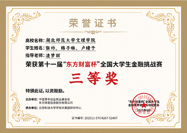 经管学院学子在第十一届“东方财富杯”全国大学生金融挑战赛斩获佳绩