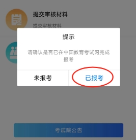考生登录后根据报名须知中的报考条件上传所需材料并提交审核,提交后请及时关注短信通知中的审核结果。