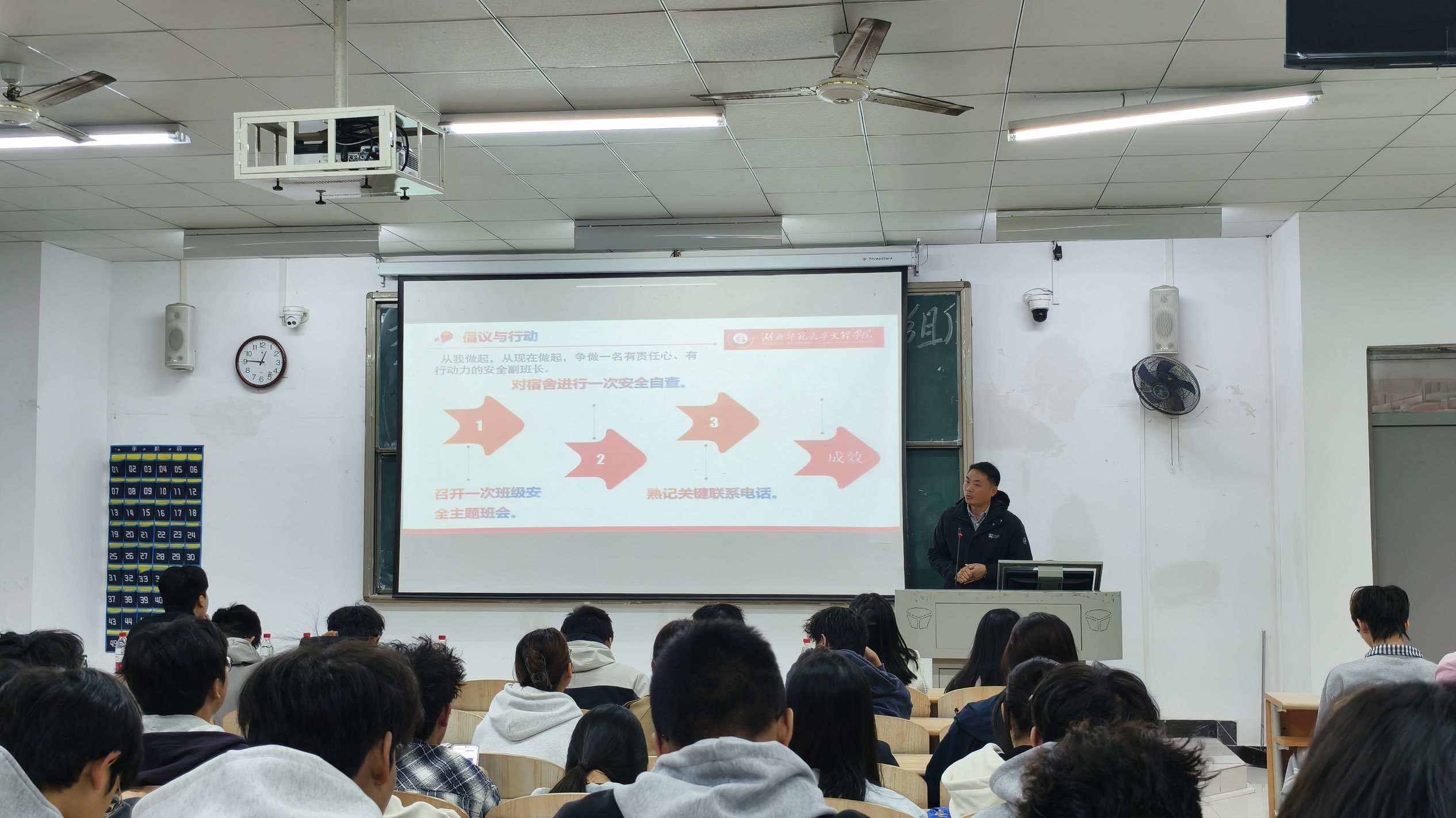 辅导员董老师就“学院—班级—寝室”三级安全管理体系的运行机制进行解读,指导学生如何构建反应迅速、处置有效的班级安全网络,切实将管理责任落到实处。
