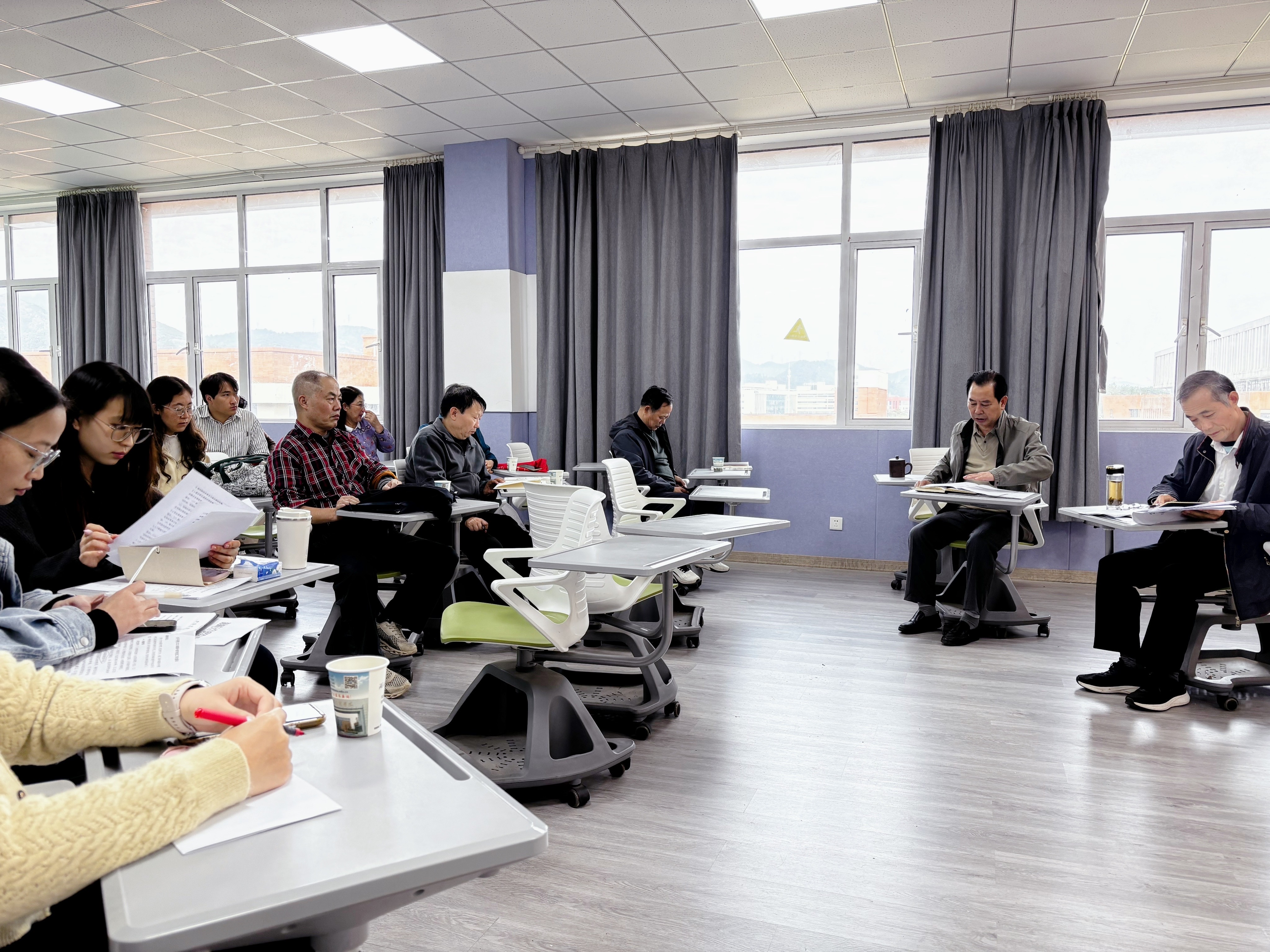 随后,各部门汇报月工作进展及后续计划。行政办汪老师围绕职称评审工作进程、学院新闻宣传、物资采购报销新规等工作进行了详细汇报;教秘办甘老师就期中教学检查材料准备工作进行说明,强调将严格按照文件检查标准,确保材料齐全、规范,保障教学检查顺利开展。