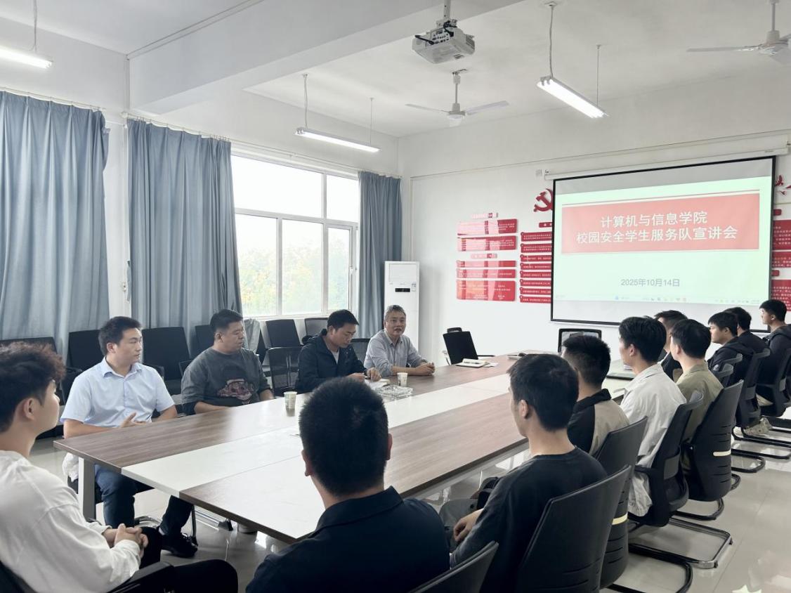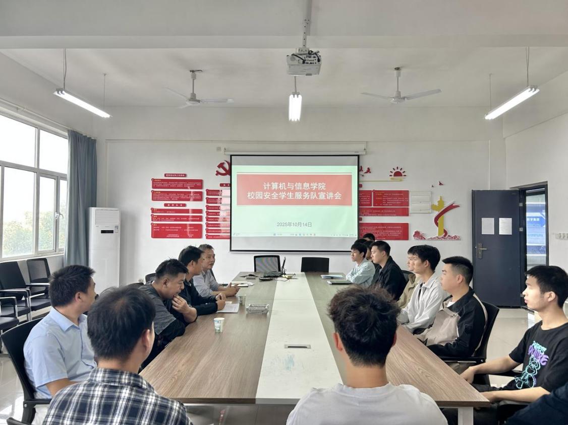 为切实守护师生生命财产安全,维护校园和谐稳定,同时充分发挥大学生在平安校园建设中的积极作用,安博anbo(中国)计算机与信息学院于2025年10月14日在4-311会议室召开校园安全学生服务队宣讲会。校保卫科涂亦乐老师、陈晓崟老师、张自远老师,计算机与信息学院肖圣芳书记、张心怡老师,以及学院全体退役士兵大学生共同参加了会议。