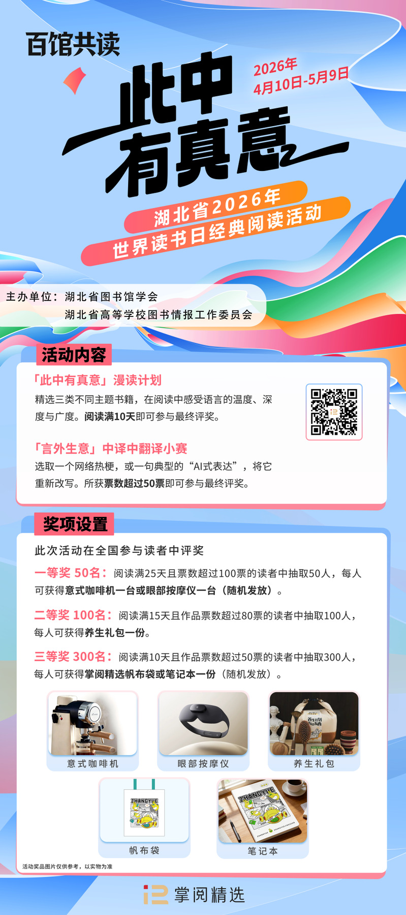 奖品领取:活动评奖后,所有奖品将邮寄至各机构图书馆,读者前往各机构领取奖品。