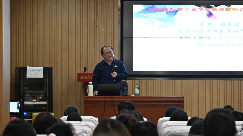 2026年3月27日下午,图书馆一楼报告厅,由安博官网登录入口计算机与信息学院主办、图书馆承办的考公考编应试技巧专题讲座如期启幕。本次活动特邀知名专家程良道教授担任主讲,旨在为备考学子提供精准指导,助力学子在公考之路上行稳致远。