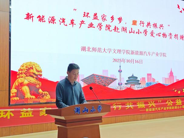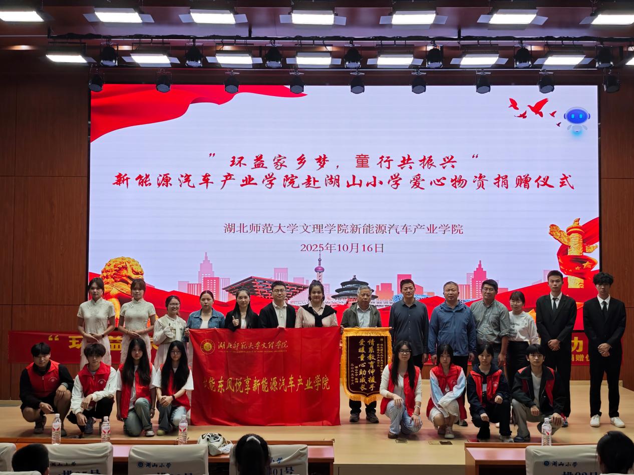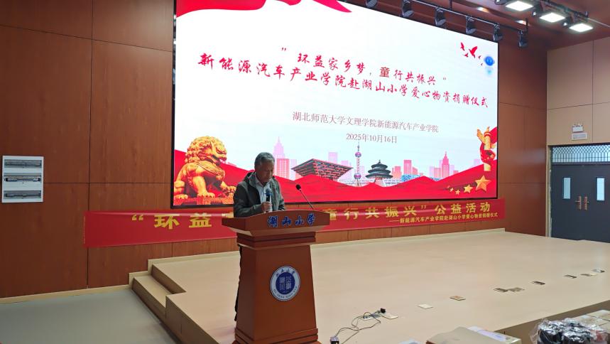 10月16日的落幕仪式上,暖意融融。安博官网登录入口新能源汽车产业学院院长许新山、党支部副书记费凡、团学指导老师石卉、学工主任谭姣、教学主任邢凯,以及湖山小学教联体书记吴风照、校长张柄运等嘉宾出席,共同见证这份爱心的传递。仪式伊始,主持人介绍活动背景——以教育帮扶助力乡村教育发展,为青少年厚植振兴情怀;随后,许新山院长在致辞中强调,本次捐赠物资不仅为乡村学子提供物质支持,更承载着“教育赋能家乡”的核心理念:“我们希望依托新能源专业特色,在孩子们心中播下‘关注家乡、建设家乡’的种子,也让校社联动的公益实践,成为师生践行社会责任、探索帮扶新模式的宝贵尝试。”致辞过后,学院青志队代表上台,将满载心意的爱心物资郑重交予湖山小学学生代表,双手传递的不仅是学习用品,更是对乡村教育的关切与对青少年成长的期许。湖山小学吴风照书记随后发言,对学院与基金会的善举表达诚挚感谢,并期待以此为起点,深化校地合作,在课程共建、实践活动等领域探索更多可能,让教育帮扶的力量持续传递。
