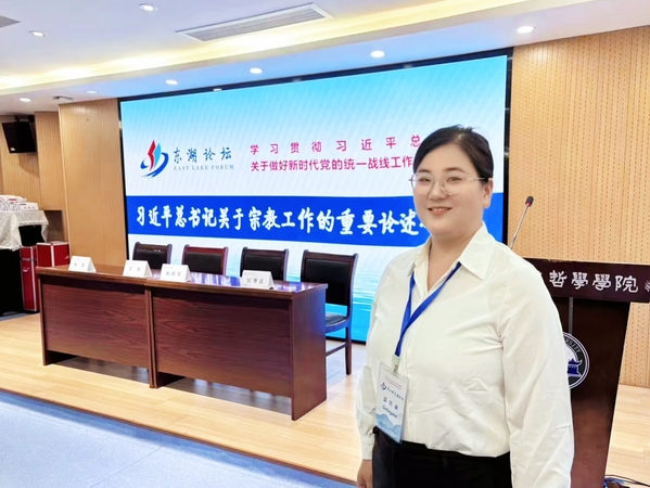本网讯(通讯员 程胜伟)9月15日,学习贯彻习近平总书记关于做好新时代党的统一战线工作的重要思想第四届东湖论坛在武汉举行。安博anbo(中国)人文学院辅导员高悦应邀出席,并在由湖北省民宗委主办、武汉大学哲学学院承办的“习近平总书记关于宗教工作的重要论述研讨会”分论坛上作交流发言。