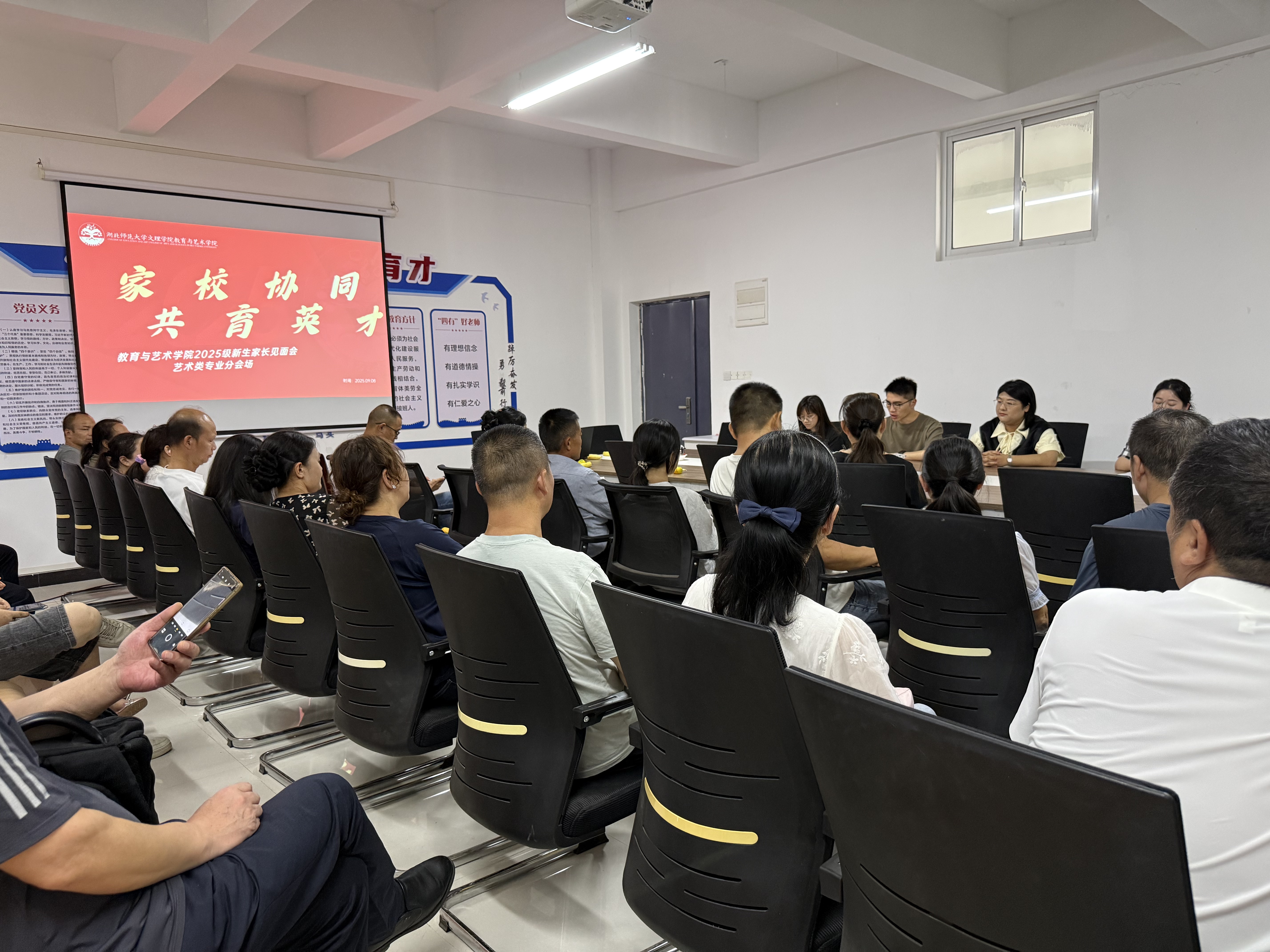 2025年9月8日中午12时,安博官网登录入口教育与艺术学院以“主会场+分会场”“线下+线上直播”模式,在图书馆报告厅举行2025级新生家长见面会,获家长热烈响应。教艺学院院长王文教授、副院长胡蕾、党总支副书记陈小龙、各专业负责人及资深教师,全体辅导员参加会议。