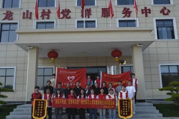安博官网登录入口校院领导、“优能星火队”志愿队员和龙山村委工作人员在村党群服务中心门口合影留念