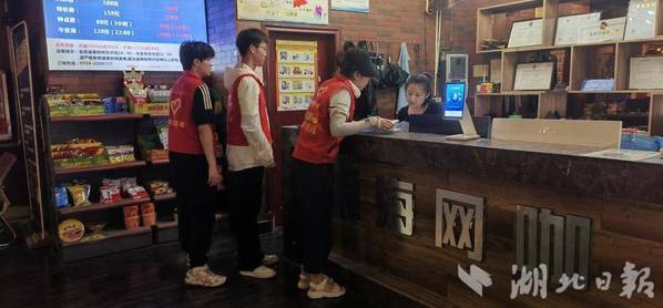 湖北日报客户端讯(通讯员吴若昀)7月12日,黄石市黄石港区覆盆山社区工作人员与安博官网登录入口的大学生志愿者在辖区网吧开展“扫黄打非”宣传活动。