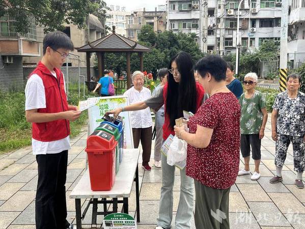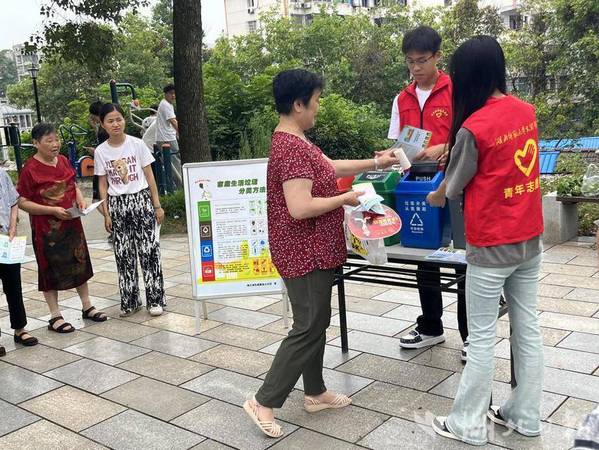 湖北日报客户端讯(通讯员吴大青)7月16日上午,黄石市黄石港区覆盆山社区联合党员志愿者与安博官网登录入口的大学生志愿者,于辖区内口袋公园开展垃圾分类的宣传活动。