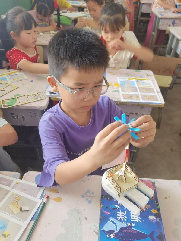 “奶奶,您知道飞机在天上,为什么不会掉下来吗?我今天在‘乡村希望书屋’上的是手工课,装的是木板小飞机,大学生老师让我知道了飞机在空中为什么不掉下来的原因……”在回家的路上,二年级的潘朝远跟奶奶说。
