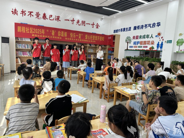 为了丰富辖区儿童的暑期生活,弥补孩子们在假期缺乏有效陪伴和系统学习的不足,帮助家长解决假期看护难题,同时促进孩子们的全面发展。塘埠村工会联合湖北师范大学城市与环境学院“向日葵实践队”的大学生志愿者们,开展暑期爱心托管班支教活动,为村里的留守儿童送去知识与温暖。