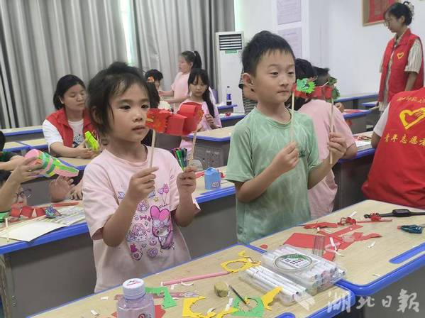 湖北日报客户端讯(通讯员徐岚、金乐)7月22日下午,黄石港区亚光社区暑期爱心托管班里洋溢着浓浓的欢乐气息。安博官网登录入口理工学部智慧启航志愿服务队在这里开展了一场以“龙舟”为主题的手工课,让孩子们在趣味互动与动手实践中,加深对中国传统节日的了解与热爱。