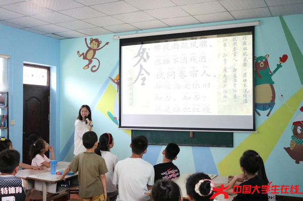 在为期三周的活动中,志愿者们精心设计了多元化的兴趣课程。“More Fun”启蒙英语课与英语口语表达课程,帮助孩子们提升听说能力;传统文化课与非遗传承课,让孩子们深入了解本土文化和传统技艺;普通话课与口才训练课则通过趣味互动,帮助孩子和家长更好地学习普通话,提高语言应用能力。志愿者们巧妙地将生活场景与传统文化融入教学,如英语教学结合非遗元素、诗词赏析链接乡土历史,既提升了孩子们的学科能力,又增强了他们对本土文化的认同感与自信心。