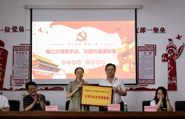 陈荟芸和胡峰共同为“大学生社会实践基地”揭牌。