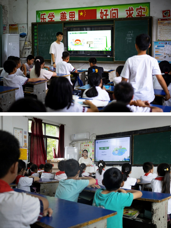 授牌仪式结束后,腾讯云大数据产业学院团总支书记黄鑫带领学院学生代表前往该区小学进行志愿宣讲防溺水课程,与小学生们面对面交流,传授防溺水知识和技能。通过生动有趣的讲解和互动问答环节,让小学生们深刻认识到防溺水的重要性,掌握正确的防溺水方法和自救技巧。