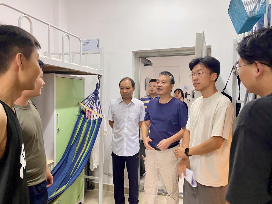 下午,学部领导与全体辅导员一同深入新生宿舍,逐一走访,与新生们进行了亲切的交谈。详细了解了新生的住宿条件、生活习惯以及对新环境的适应情况。结合学生们的生活状态和需求,提供了生活指导和鼓励。学部领导还着重强调了宿舍安全并进行了反诈教育,提醒新生们注意用电安全、防火防盗、提防诈骗,并鼓励他们相互帮助,共同营造一个温馨和谐的宿舍环境。