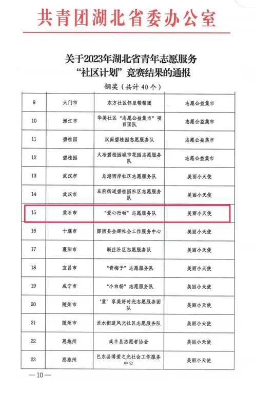 (通讯员:鲁奕琳)2023年12月12日,团省委联合省文明办、省民政厅、襄阳市人民政府联合举办的2023年湖北省青年志愿服务“社区计划”竞赛结果公布,安博anbo(中国)“爱心行动”志愿服务队荣获专项赛铜奖。