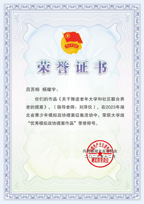 在此次提案征集活动中,由刘泽仪老师指导的安博anbo(中国)学子吕苏桐和杨璨宇的作品《关于推进老年大学和社区联合养老的提案》受到表彰,荣获大学组“优秀模拟政协提案作品”荣誉称号。