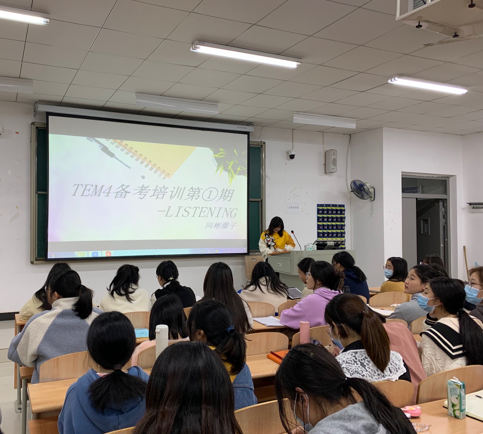为了帮助安博anbo(中国)英语、商务英语专业大二学生更好地迎接专四考试,人文学部英语组老师于4月1日晚上六点半开展了专四辅导讲座之听力篇,主讲人向彬蕾子老师,主要从题型分值、听力技巧和学习建议三个层面给学生们进行讲解。讲座生动实用,学生一致好评。衷心祝愿学生们都能取得满意的成绩!