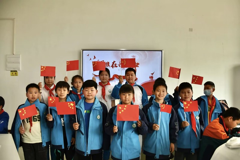在实验楼内,一场寓教于乐的实验小活动正在进行。欧阳智欣同志通过讲述“红旗里的故事”,引导学生们积极参与到红旗的剪裁制作活动中学生党员欧阳智欣同志以清晰的思路、真诚的话语,带领学生们重温革命历史,讲述“红旗里的故事”,共同回顾中国共产党的光辉历程。整场党课内容丰富,阐述透彻,引导少先队员们铭记新中国来之不易,感受生在国旗下、长在党的怀抱中的幸福;在故事的推进中引出红旗的剪裁制作活动,少先队员们在剪裁五星红旗的过程中感悟红旗寓意,体会到其中浓浓爱国情谊。