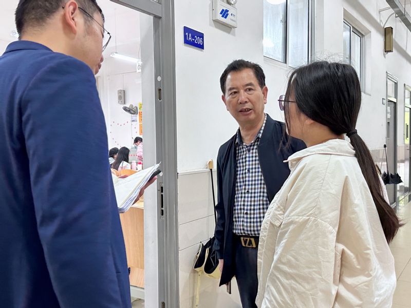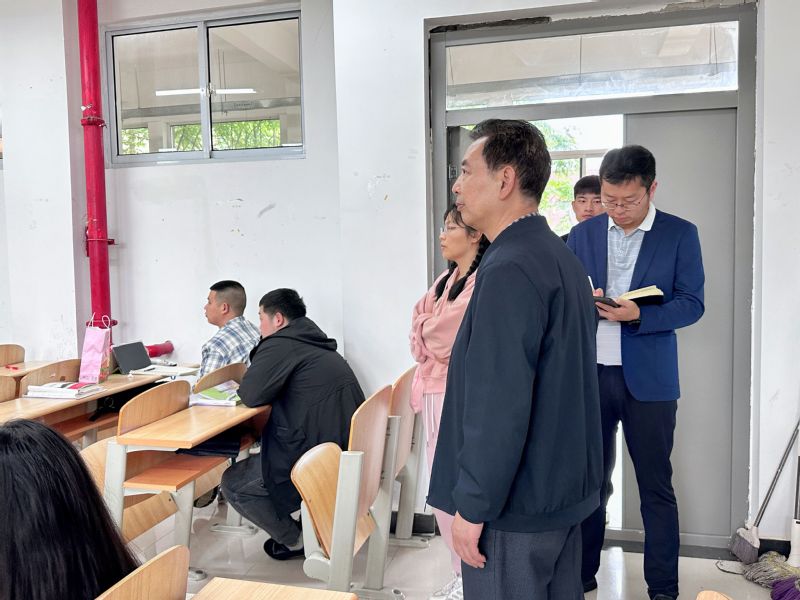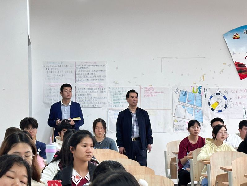 为进一步巩固优质学习环境,营造浓厚学习氛围,人文学部持续加大学风建设力度,开启本周学风督查行行动, 4月17日下午14时,人文学部党总支书记周景斌老师、团总支书记胡文玉老师、学工办副主任郭旭林老师走近学生课堂,督促师生共同遵守课堂纪律。