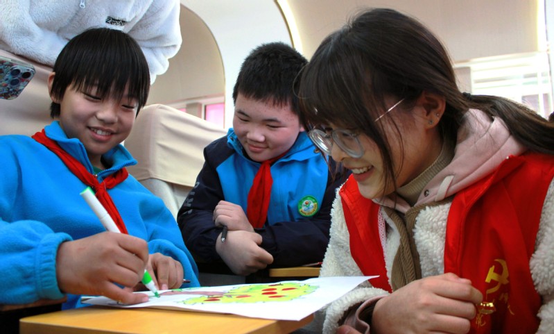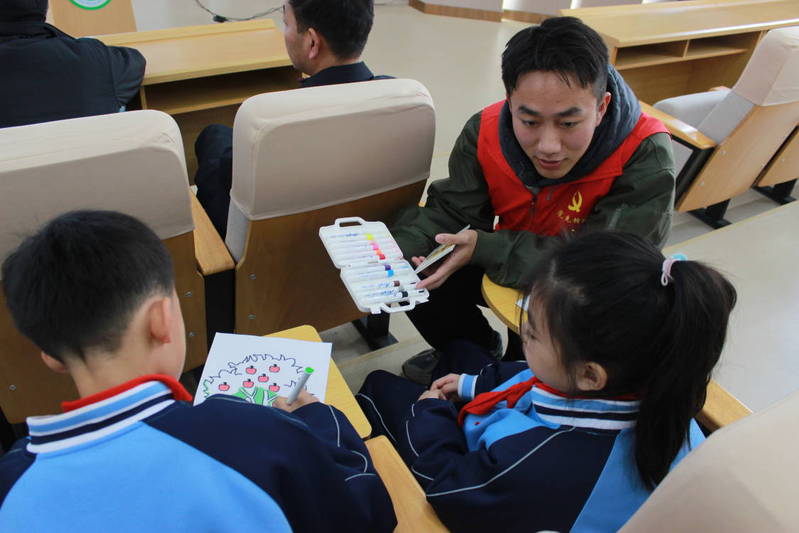 在活动的首个环节——“涂鸦传递”游戏中,志愿者们为17名留守儿童分发了彩笔和画纸,鼓励孩子们通过涂鸦表达自己心中的美好生活和对未来的憧憬。孩子们在画纸上自由发挥,尽情地展示自己对未来的期望与对生活的热爱,活动现场充满了欢声笑语。