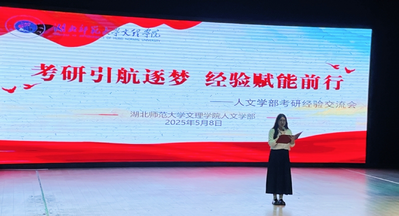 5月8日下午,人文学部"考研引航逐梦,经验赋能前行"主题交流会在学术报告厅举行。人文学部主任熊子延、学部党总支书记周景斌、英语专业教师伍晓晴,历史学专业教师李紫玫,全体辅导员及200余名学生共同参与,通过多维度的经验分享为备考学子提供系统指导。