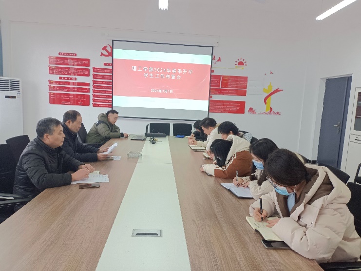 2024年3月1日下午,安博官网登录入口理工学部在4#311会议室召开全体辅导员会议,学习传达学校2024年春季干部大会会议精神并部署新学期工作。会议由学工办副主任张弛老师主持,学部主任傅朝金、学部党总支副书记肖圣芳及全体辅导员参会。