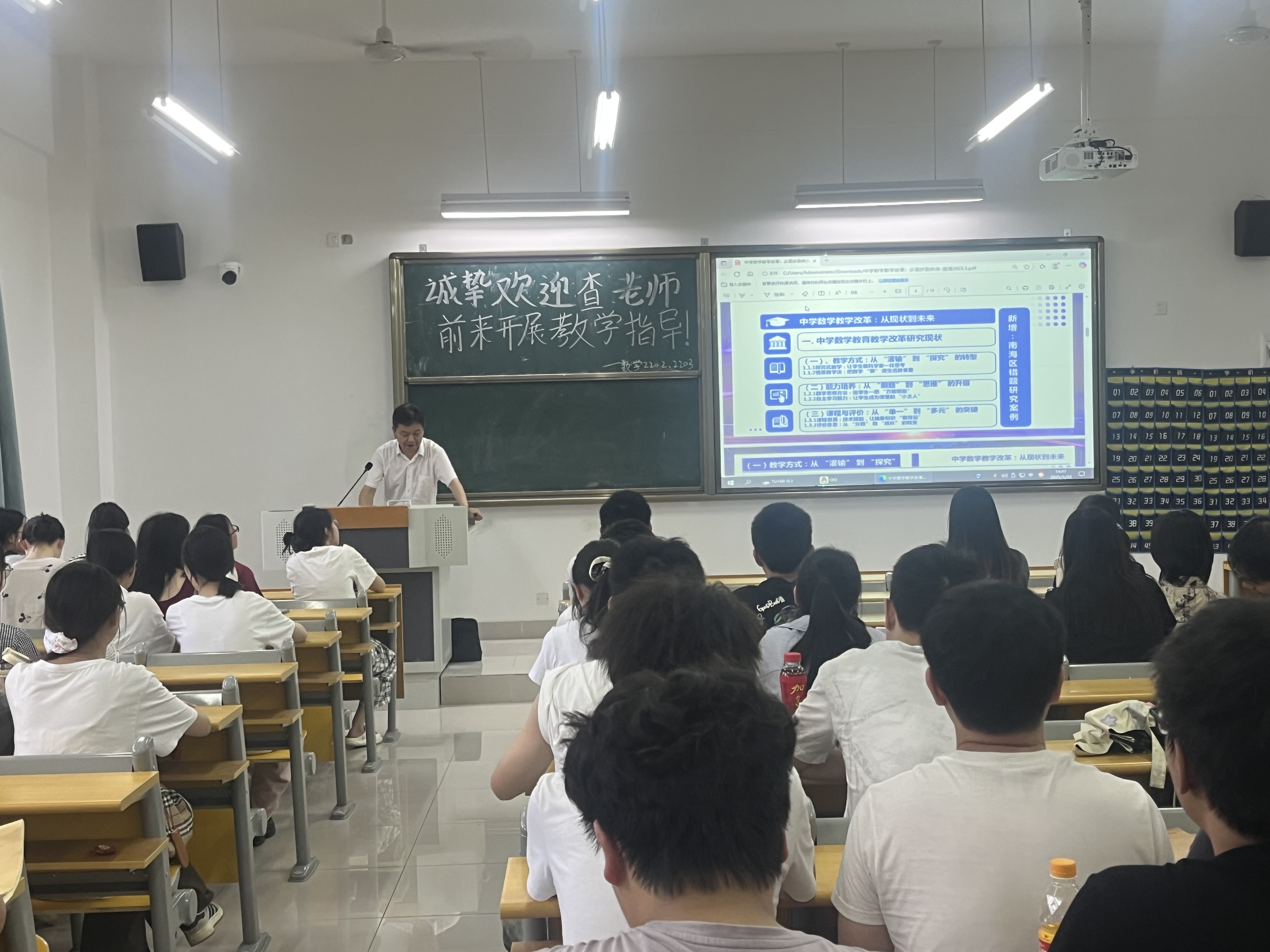 22日下午3点,胡清华老师就教师专业发展进行了经验分享。他强调在校师范生要加强数学学科核心素养培养,应注重提升师范生学科专业知识、教育教学能力与科研能力,全方位推动其专业发展,为数学教育高质量发展培育专业人才。
